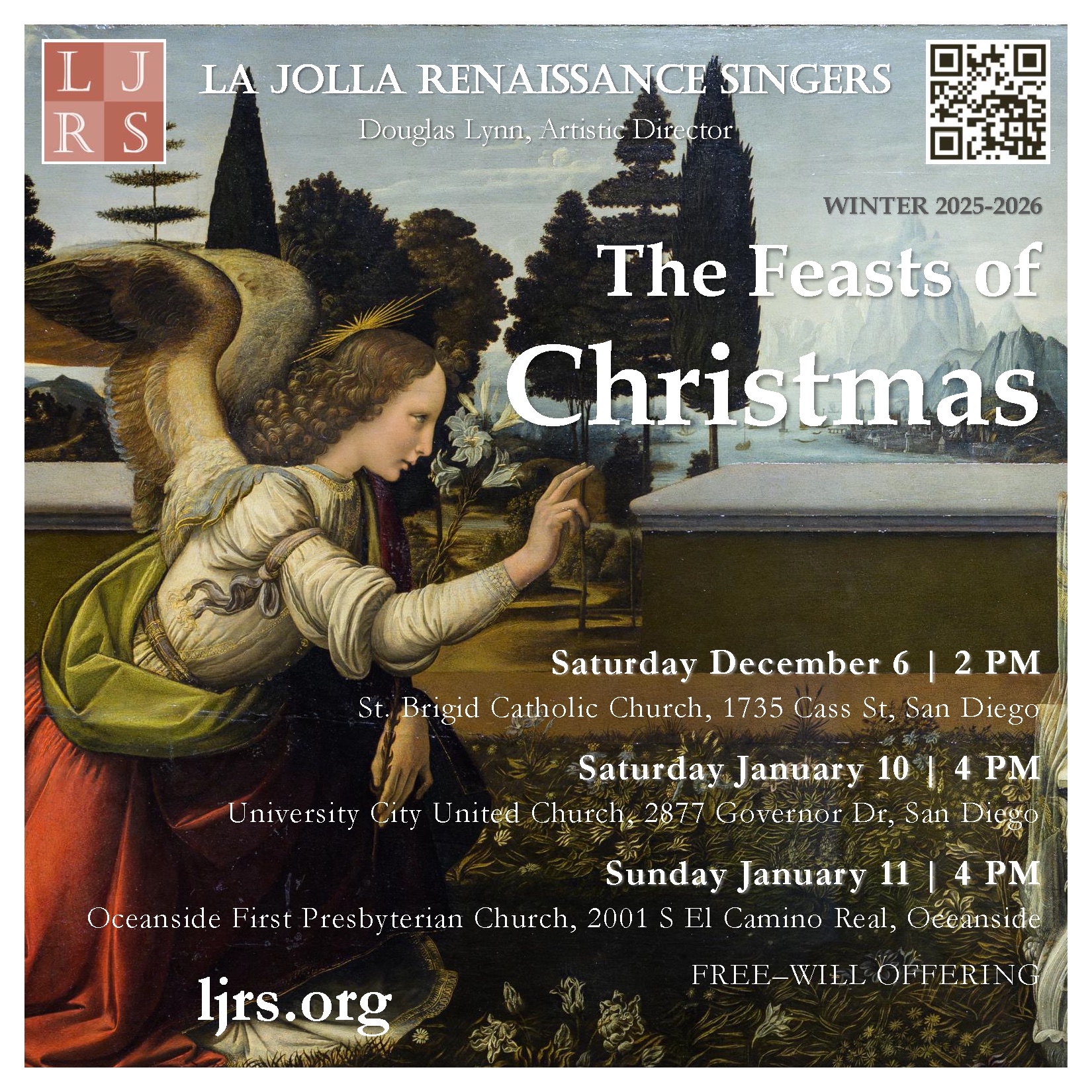 The La Jolla Renaissance Singers will be presenting an exciting program this Winter Season 2025-2026, a program that journeys through musical history and captures the essence of “The Feasts of Christmas” as festivities were during the Renaissance Christmastime Celebrations.